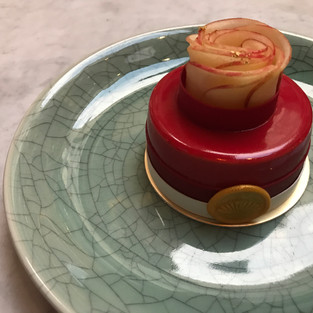 The waitress at the restaurant was surprised I asked to sit outside. It looked like a courtyard in Europe, I was in love with the décor and environment. Sean then laid out the rest of the options for the night: we could have dinner and go to Taipei’s Smith and Wollensky’s (probably spelled that wrong) for their massive chocolate cake and listen to jazz at the bar there or I could opt for a cake at the bakery next to the café and then after our meal go to a new cocktail bar he went to the week before. Seeing as I ate more of the snacks than I intended the idea of a large cake slice that Sean and 3 of his friends had trouble finishing before, I went for a bakery cake. How can you not want to try the Black Tea Mousse and Apple cake? It looked too pretty to eat. We returned to our table outside and the bakery brought the cake to our table fairly quickly. There was a little bit of a misunderstanding I guess because Sean had attempted to get them to bring it after the meal and with candles so they offered countless apologies and took the cake back. The food was amazing though especially after the quarantine food I keep comparing everything too. We got truffle fries to split (let’s be honest I ate most of them) and I got what came to be a roasted Chicken and it was marvelous while Sean got a tempting salad. After the dishes were collected, they did bring out the cake again this time with candles. The only trouble was because we chose the seats outside, the wind kept prohibiting the flame to actually catch on the candles. It would catch and then sputter out as the baker walked to the table. It took three restaurant employees trying to hold their hands around the cake to protect it from the wind with Sean and I saying it was alright and that they tried until the stopped and let us start to eat. The cake was as good as it looked. It tasted, well like black tea, but the cake portion was almost like a carrot cake with the middle being the inside of a brown better with cinnamon apples. Definitely a good pick.