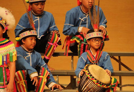 As with most events I go to with my school, I really had no clue what I was getting into. We showed up at the Taitung County center for Culture and Arts to see hoards of children in traditional clothing. I don’t think I have ever seen that many children dressed in fancy traditional outfits running around barefoot, playing tag before. It was interesting to me as I tried to identify which singing group was which aboriginal community by their clothes. The Amis (like my other school’s culture 電光國小) girls and women always wear intricate headdresses with weathers while the men wear colorful striped pants that tie up the leg. Bunun women and girls like 崁頂國小 wear skirts, leg warmer-esque cloth around their ankles, and a specific style shirt. The men and boys wear skirts as well coupled with a crop top and a vest. The Paiwanese have by far the most intricate outfits at least at this event. You could hear the children coming as their outfits had little pieces of metal and bells that would tinkle as they walked. These students typically were wearing long dresses.